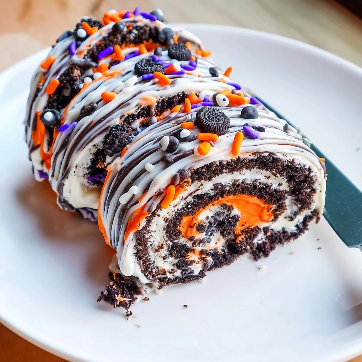 This stunning Halloween dessert combines crushed Oreos with cream cheese and butter for a rich, dark base. The filling features fluffy whipped cream tinted with orange food coloring for that perfect spooky vibe. Simply crush, mix, roll, and chill for an impressive centerpiece.