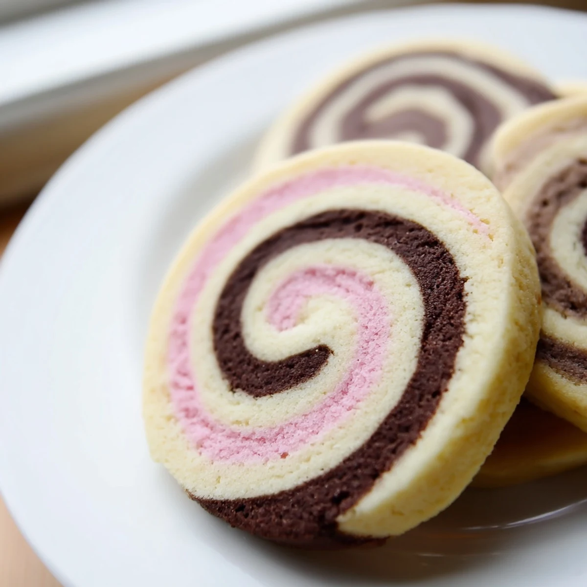 Create stunning tri-color spiraled cookies featuring classic Neapolitan flavors of chocolate, vanilla, and strawberry. These soft, buttery treats combine a tender cookie base with vibrant layers that bake into eye-catching swirls perfect for desserts, parties, or afternoon tea.