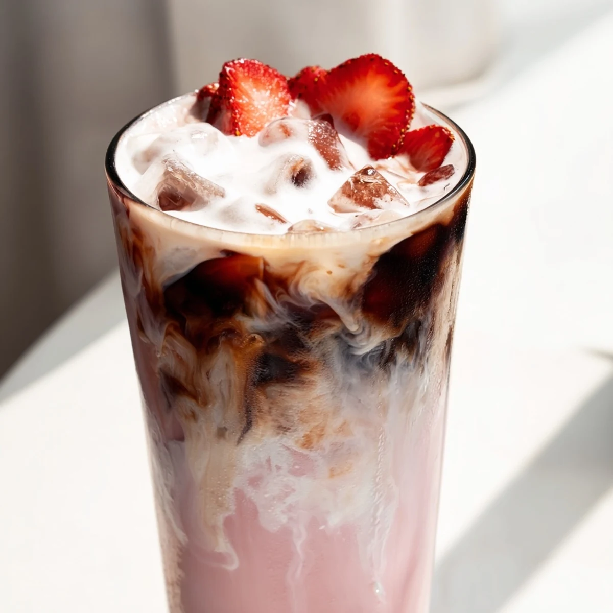 This chilled strawberry latte combines fresh strawberry puree with cold milk, cream, and espresso for a beautifully marbled summer drink. Ready in just 10 minutes, it offers the perfect balance of fruity sweetness and rich coffee flavor.